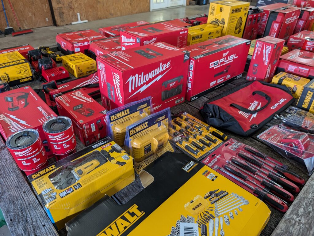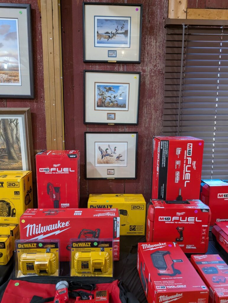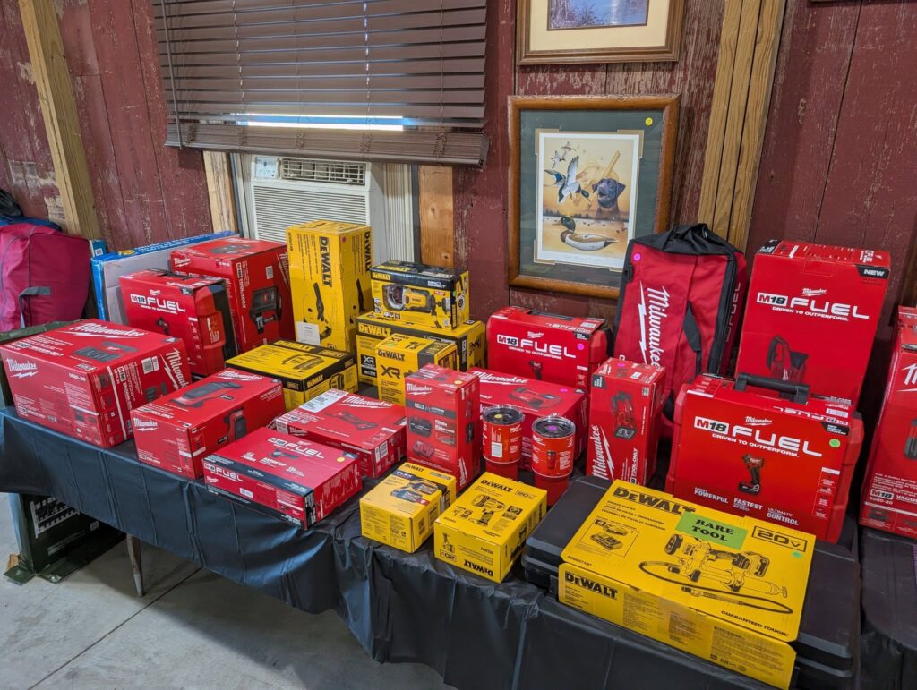 This sale will included a line of new DeWalt and Milwaukee battery operated tools, as well as other NEW tools from various makers. This sale will also include a large selection of ammunition, hunting items and gun related goods. There will also be numerous NEW items from Bass pro Shop and Cabela’s.
